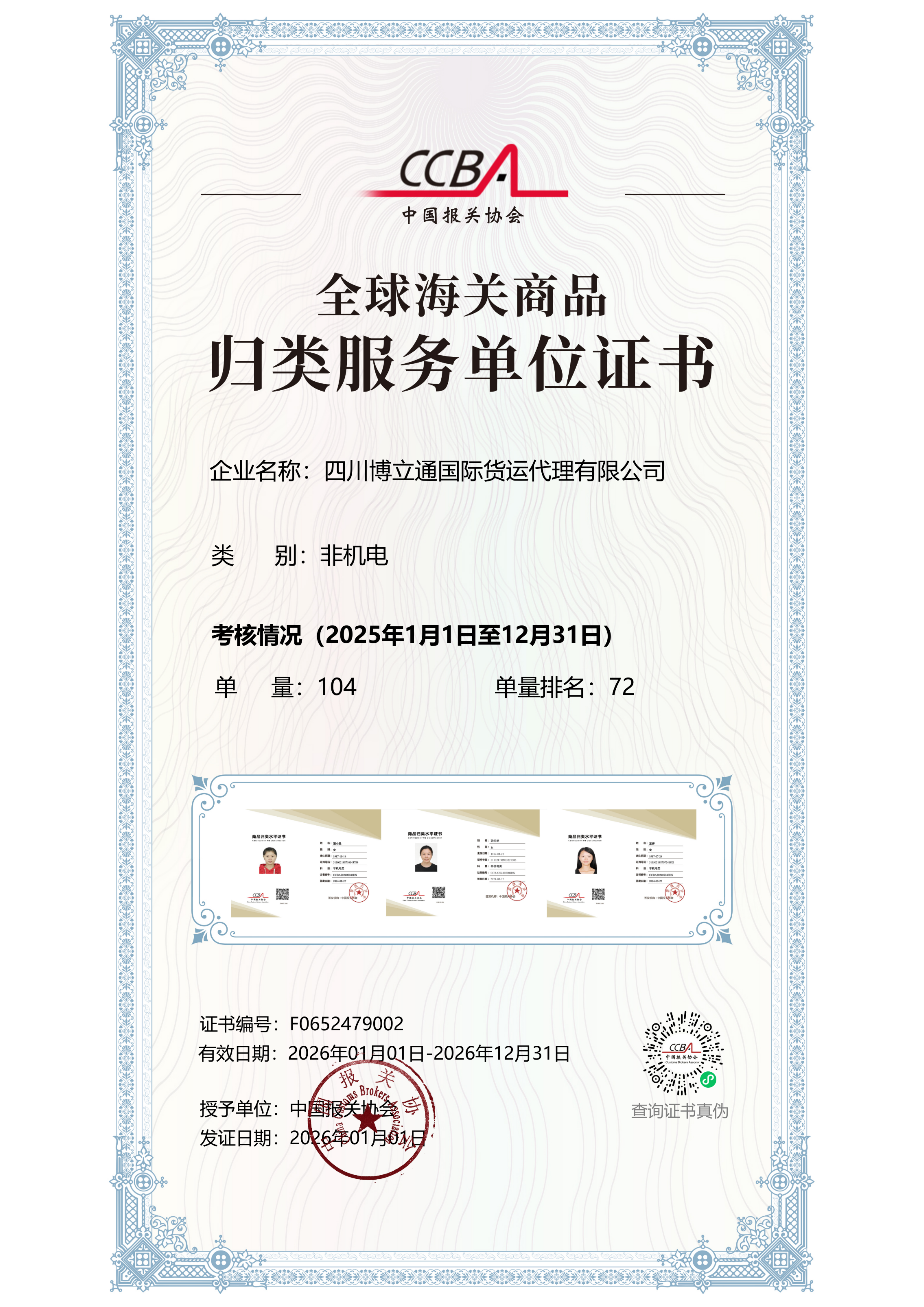 我公司是经成都海关批准成立的从事代理各进出口货物、监管货物、保税货物等的报关、报验业务及进出口货物的保税仓储、运输的综合性的专业公司,现为中国报关协会会员单位、四川省报关协会会员单位,属于 AEO高级认证企业。多年来,我公司自觉遵守海关、检验检疫部门的各项法律、法规和政策,规范报关、报检行为,建立了良好的信誉,成绩斐然,得到社会各界的好评。
