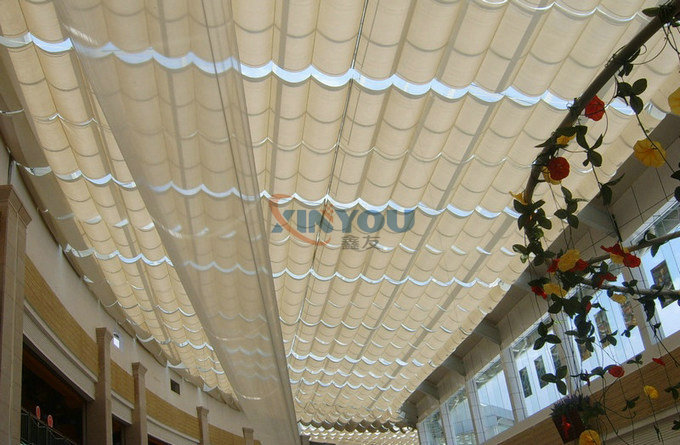 效 果:天棚帘完全展开后,面料呈现均匀的波浪效果。